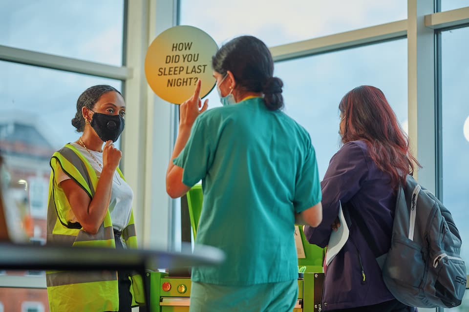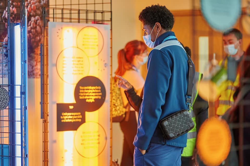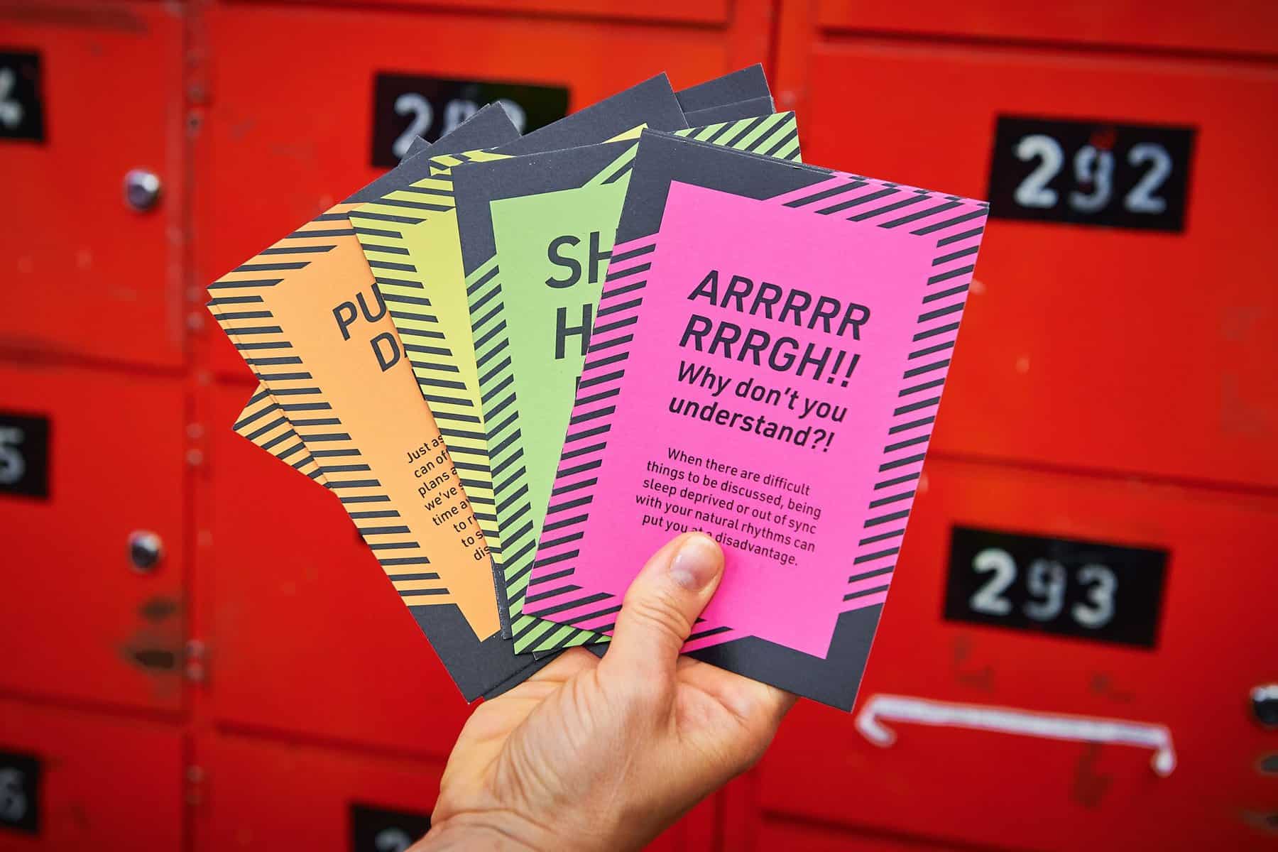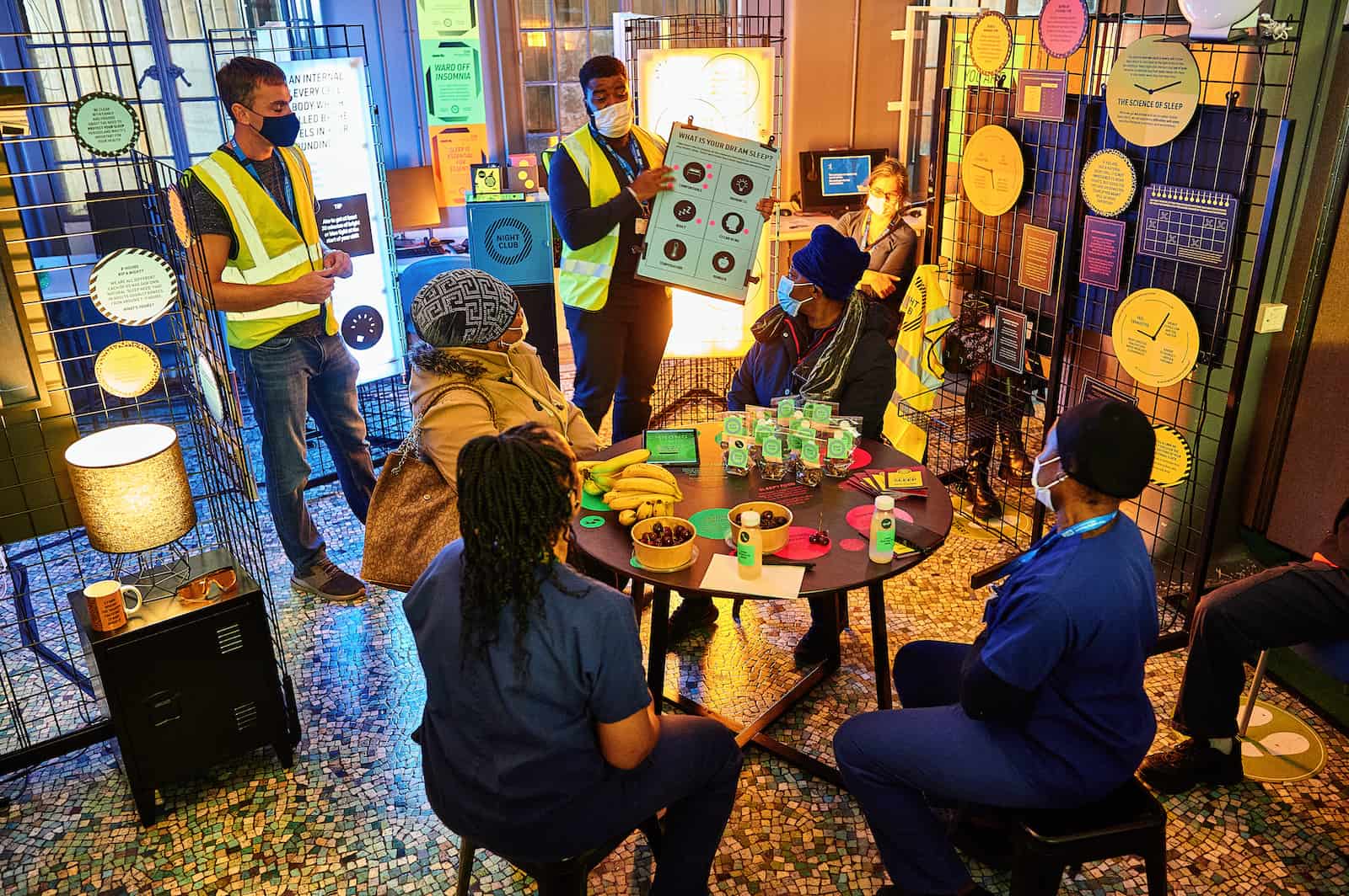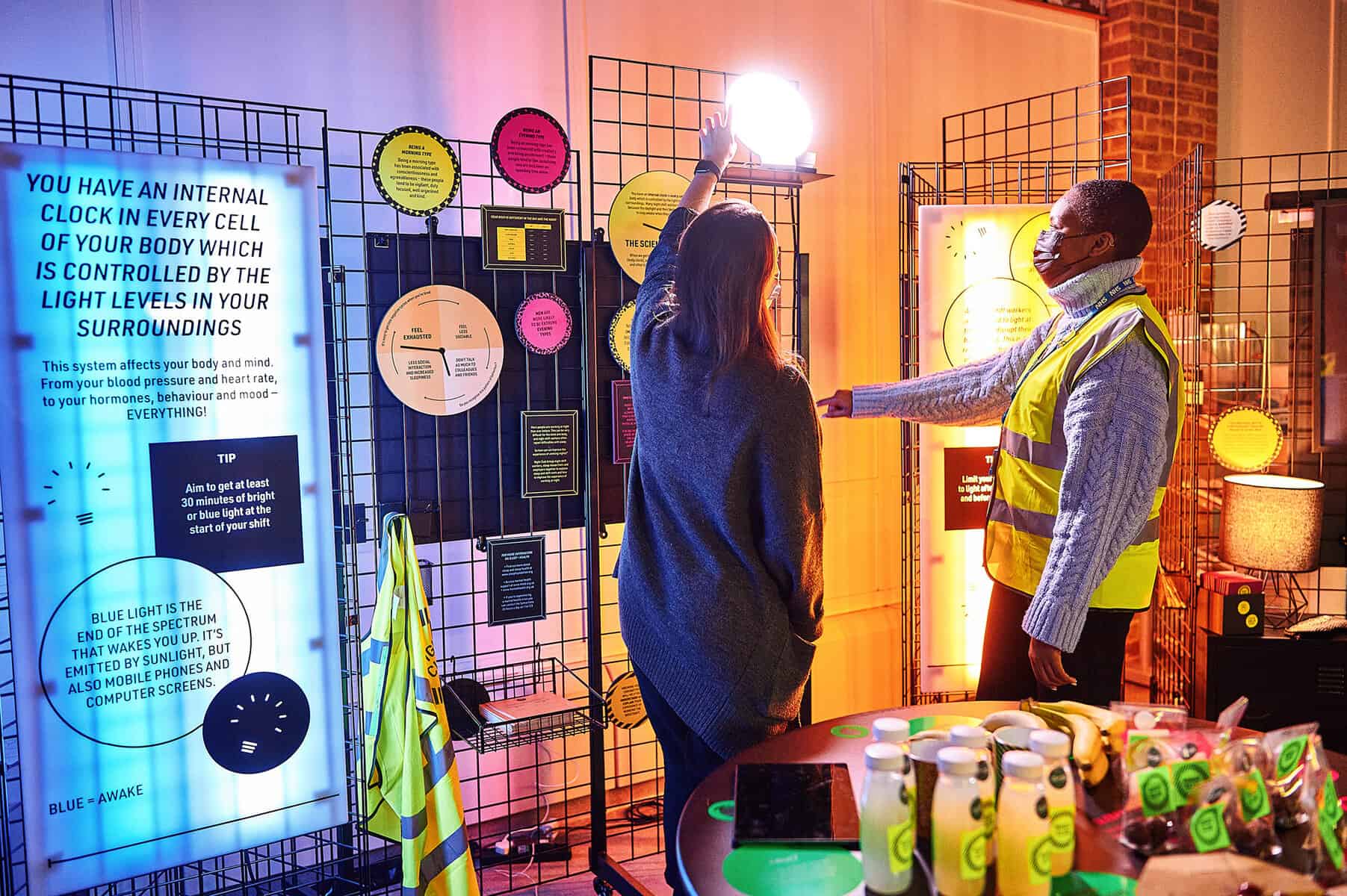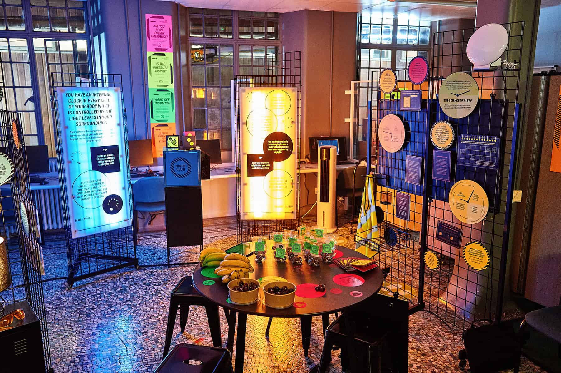 NIGHT CLUB is an award-winning engagement programme that brings workers and employers together with sleep scientists to help mitigate the negative impact of shift work. Co-designed with night shift workers and devised by The Liminal Space, NIGHT CLUB innovates wellbeing training through the lens of art and design. The interactive installation combines evidence-based content with bright lights, neon colours and bold provocations to inspire action and spark imagination. Check out the events programme on night-club.org.